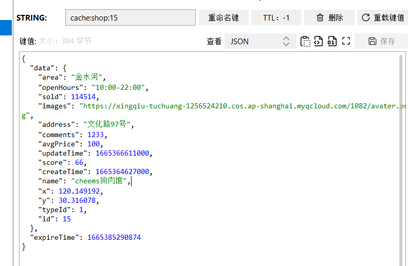 1 2 3 4 5 @Data public class RedisData { private LocalDateTime expireTime; private Object data; }