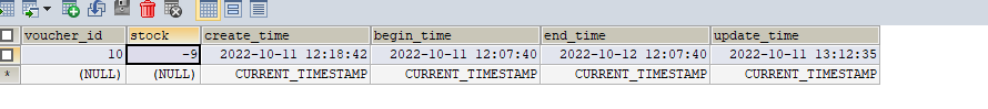 查看数据库发现 库存变为了负数