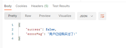 如果查到了数据, 那么说明这个用户已经买过了, 就不能再次购买
