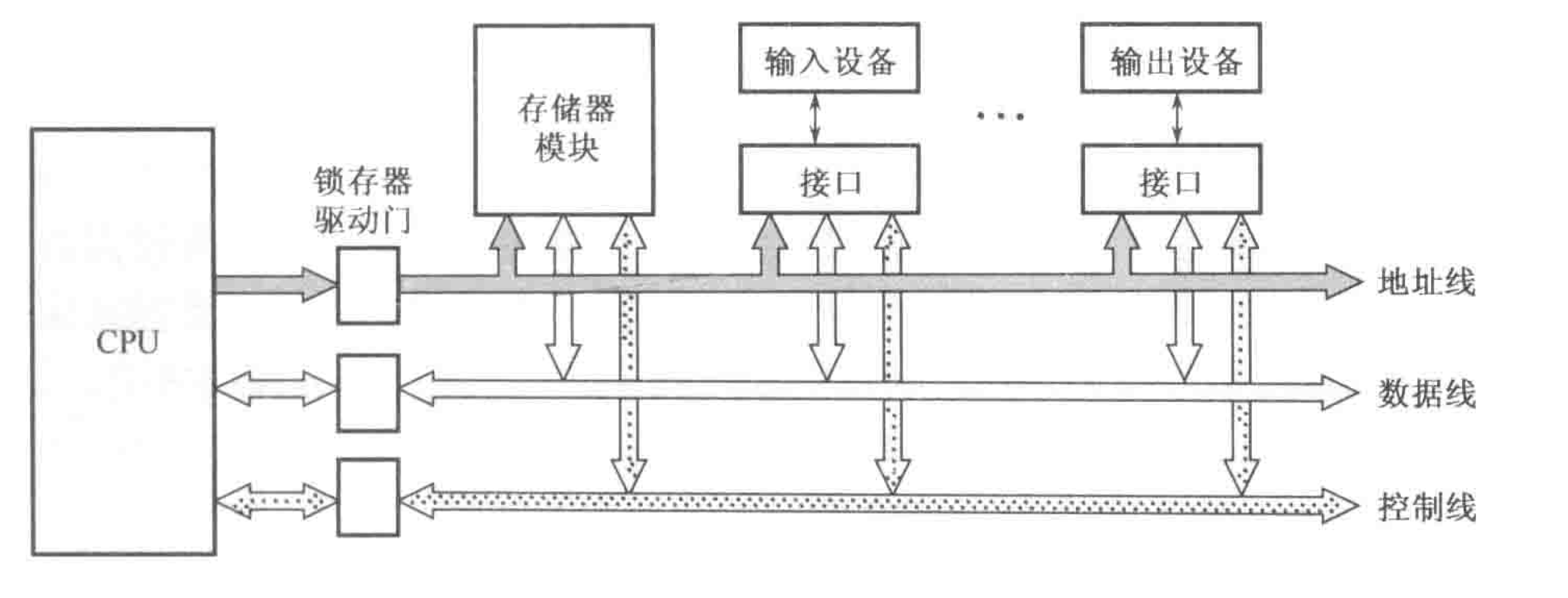 • 数据传送总线:由地址线、数据线、控制线组成。其结构与简单总线相似,但一般是32条地址线,32或64条数据线。为了减少布线,64位数据的低32位数据线常常和地址线采用多路复用方式。