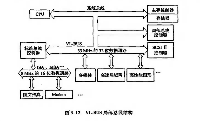 大多数计算机采用了分层次的多总线结构。下图它是一个三层次的多总线结构:CPU总线、PCI总线和ISA总线。