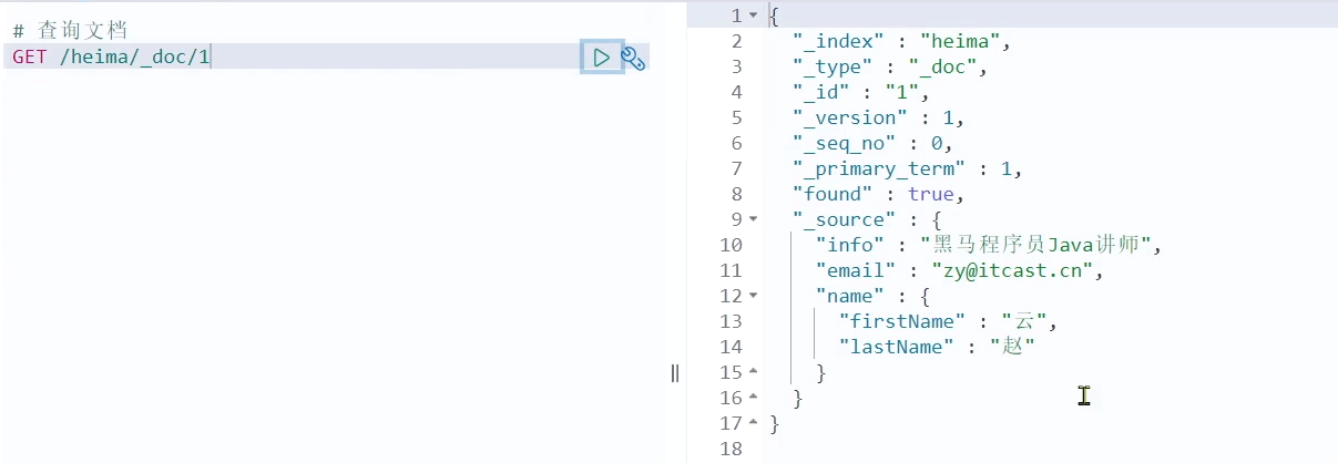 可以看到,结果是一个JSON,其中文档放在一个_source属性中,因此解析就是拿到_source,反序列化为Java对象即可。