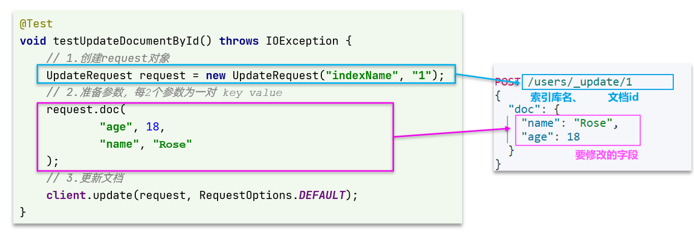 - 1)准备Request对象。这次是修改,所以是UpdateRequest