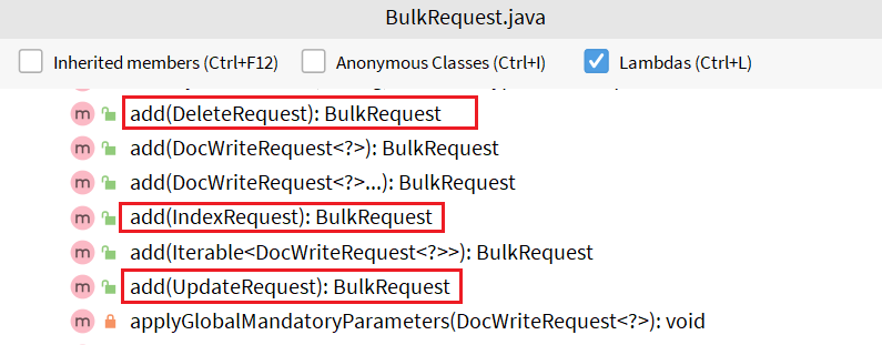 - 创建XxxRequest。XXX是Index、Get、Update、Delete、Bulk