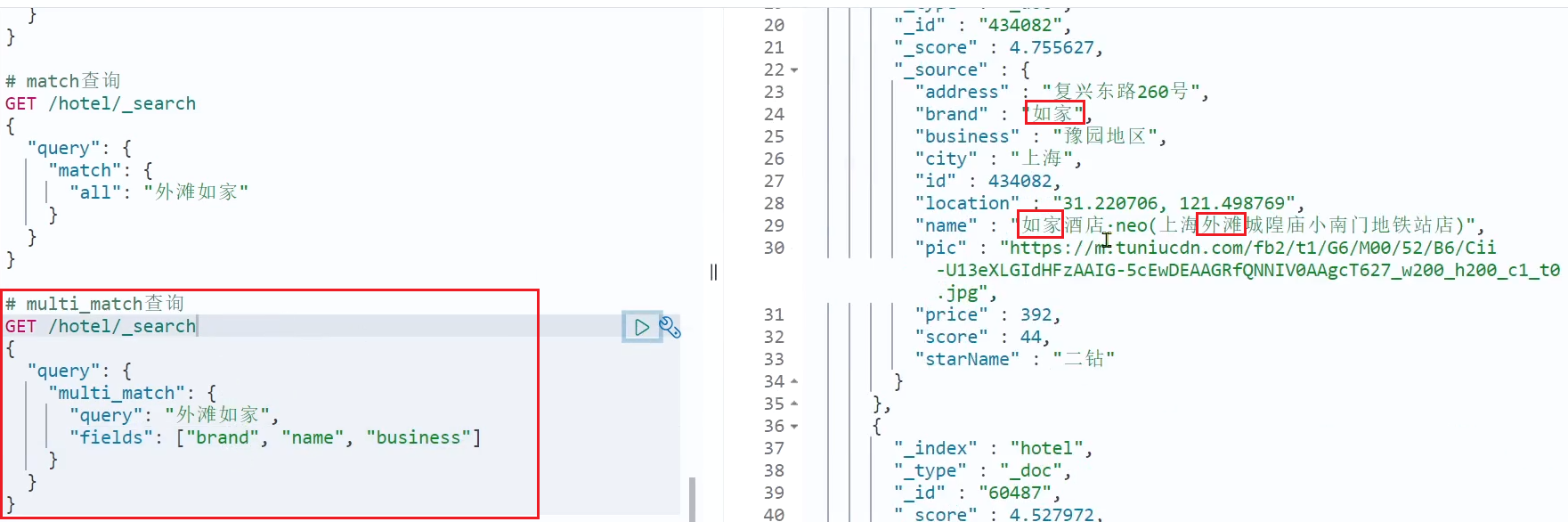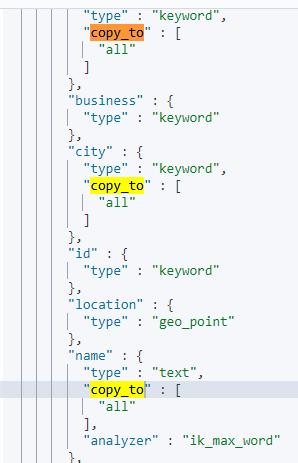 因为我们将brand、name、business值都利用copy_to复制到了all字段中。因此你根据三个字段搜索,和根据all字段搜索效果当然一样了。