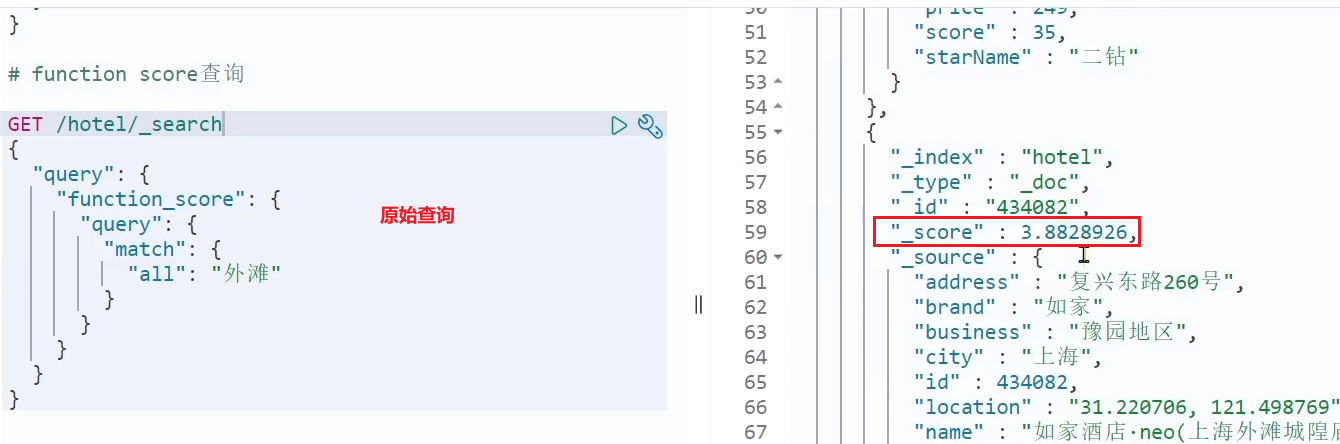 接下来我们就要修改查询条件了。之前是用的boolean 查询,现在要改成function_socre查询。