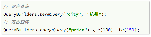 private void buildBasicQuery(RequestParams params, SearchRequest request) { BoolQueryBuilder boolQuery = QueryBuilders.boolQuery(); boolQuery.must(StringUtils.isNotEmpty(params.getKey())?QueryBuilders.matchQuery("all", params.getKey()):QueryBuilders.matchAllQuery()); if(StringUtils.isNotEmpty(params.getCity())){ boolQuery.filter(QueryBuilders.termsQuery("city", params.getCity())); } if(StringUtils.isNotEmpty(params.getBrand())){ boolQuery.filter(QueryBuilders.termsQuery("brand", params.getBrand())); } if(StringUtils.isNotEmpty(params.getStarName())){ boolQuery.filter(QueryBuilders.termsQuery("starName", params.getStarName())); } if(params.getMinPrice()!=null&& params.getMaxPrice()!=null){ boolQuery.filter(QueryBuilders .rangeQuery("price") .gte(params.getMinPrice()) .lte(params.getMaxPrice())); } request.source().query(boolQuery); }