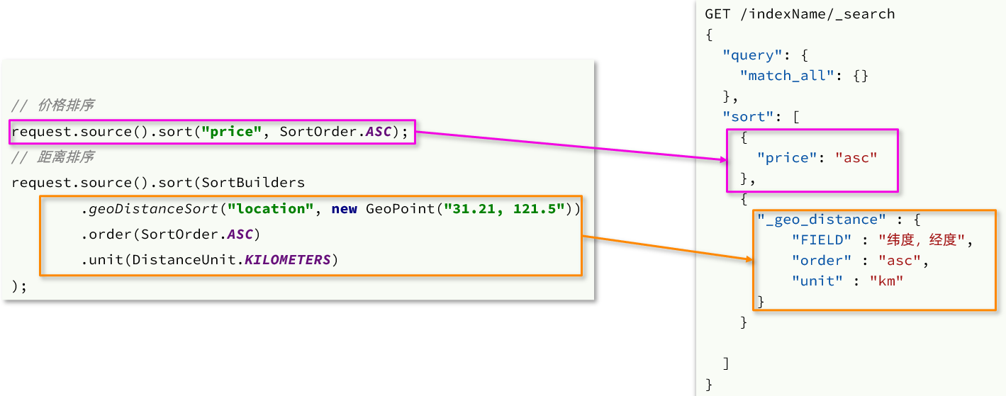 我们只讲了普通字段排序对应的java写法。地理坐标排序只学过DSL语法,如下: